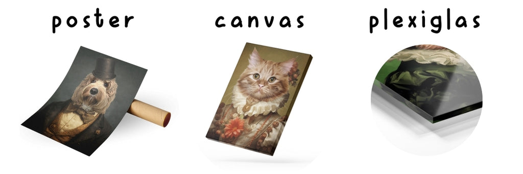 Whatever material you choose, each offers its unique benefits and style. Whether you go for the classic charm of canvas, the elegant simplicity of a matte poster, or the modern look of acrylic glass, your artwork is sure to be a focal point in any room.
